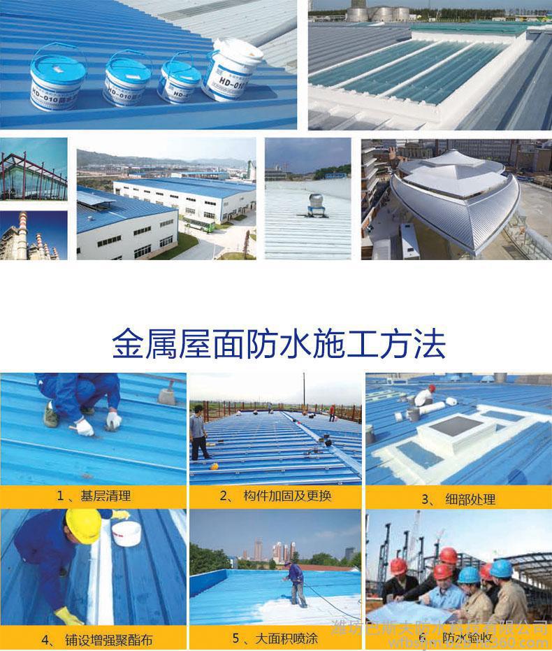 ●用于钢结构厂房屋面、旧金属屋面翻新、金属屋面天沟等防水工程
