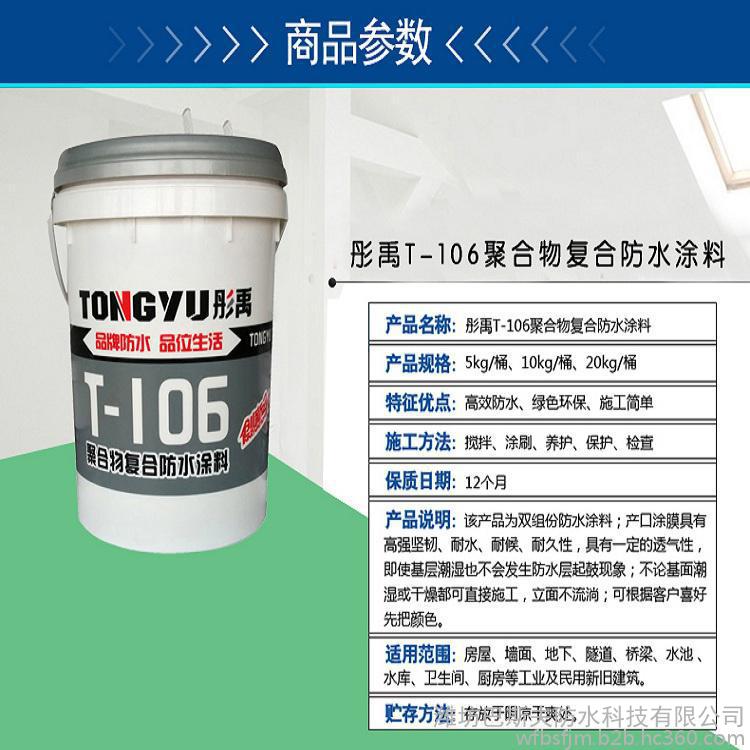 T-106聚合物复合防水涂料 是绿色环保型防水涂料,届**推荐住宅建筑防水涂料。该材料是由有机液料和无机粉料复合而成的双组分防水涂料,具有有机材料弹性高、机材料耐久性好的双重特点,涂膜后可形成高强坚韧的防水涂膜 产品特点能在潮湿或干燥的多种材质的基层上直接施工,立面不流淌;涂层具有高强坚韧、耐水、耐候,耐久,陛优异;可加颜料,形成彩色涂层;水性涂料,无毒、无味、无污染、环保:旖工简单,工期短,可在潮湿基层上施工,粘结力强;涂层具有一定的透气性,即使基层潮湿也不会发生防水层起鼓现象。