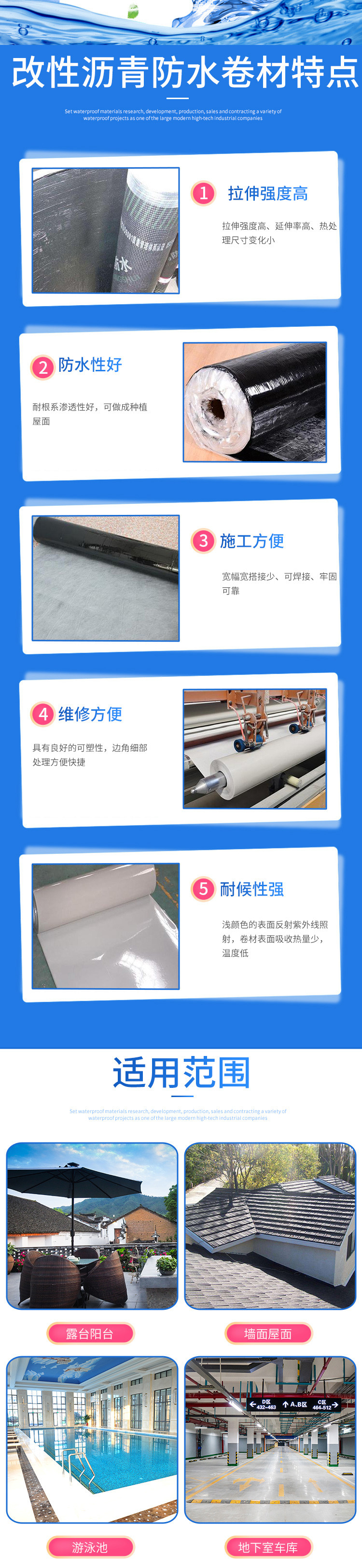 聚氯乙烯PVC防水卷,非沥青基自粘胶膜卷材,改性沥青自粘防水卷材,三元乙丙橡胶防水...