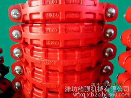 安装前应检查管卡的规格型号是否正确,除去沟槽内泥沙然后在胶圈外表面涂刷肥皂水; 安装管卡时要注意使钢环入槽,防止管卡其在钢环上; 两侧螺栓的拧紧要同步进行,互相照顾,并主义观察胶圈的状态。当发现一侧有咬圈迹象时要放松对方螺栓,然后再继续拧紧该螺栓直至克服咬圈点,当克服咬圈点后,两侧螺栓再同时拧紧,直至管卡之间结合处贴紧,不存在缝隙为止。 对于有震动的使用场合,应采用弹簧垫圈防松。