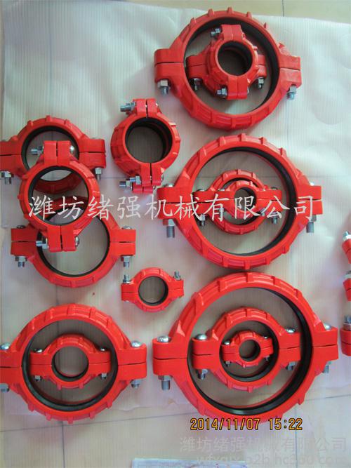 潍坊绪强机械有限公司生产的卡箍式柔性管接头系列产品,型号为:xgqt、krhd、gjh、gjj等。卡箍式柔性管接头是一种新型管道连接器,它利用介质产生的压力和密封圈的自紧力,对介质进行密封。适用于电力、矿山、化工、环保等部门的地面或井下供排水、输送煤、砂、灰碴等管路的连接。卡箍式柔性管接头与传统的法兰盘相比,具有设计合理,技术性能好,使用安全可靠,社会效益高等特点。我公司生的卡箍式柔性管接头体积小、重量轻、结构简单,每套管接头只有2—4个(大口径除外)螺栓,安装维修方便,在安装时可以随意选定操作方便的地方操作,与法兰盘相比提高工效5—8倍,不仅减少了安装强度,而且为延长管道寿命提供了确切的保证,故又称快速接头;两连接管子之间为柔性连接,允许3—5度任意偏移,在稍有起伏、弯曲的地面或巷道的管路中,可不必另取角度弯头,由于两管之间具有间隙,可自行补尝钢管伸缩,管路全程可取消伸缩补偿器,使工程造价降低;柔性密封圈具有自紧密封功能,它与传统的法兰盘相反,介质压力越高,密封性能越好,而且耐冲击、耐震动,保证了密封可靠性。由于该产品集上述之优点,现已被电力、煤碳、冶金、化工等设计部门所重视和选用,远销国内十几个省市的电力、煤碳、冶金、化工等部门,深受用户欢迎。
