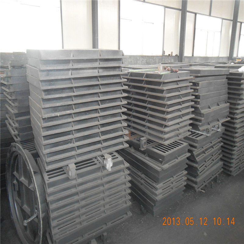 球墨铸铁井盖的生产流程 1.原材料控制: (1).生铁:每批生铁进厂必须进行检测,合格后方可入库,如不合格拒绝使用。 (2).检测频次:30吨以下每批三个样品,30吨以上每批五个样品。 (3).回炉料:为了确保产品质量稳定,回炉料的投放严格控制在30%的比例之内。 2.熔炼方法(球墨铸铁井盖、井圈) (1). 1.5吨双频电炉熔炼:出炉温度在1400--1500℃ (2). 每包铁水重量:1500kg/包 (3).稀土镁合金加入量1.4%-1.6% 3.控制方式 (1).每包铁水球化之前检测一次出炉温度,控制范围1400-1500℃。 (2).每包铁水球化完毕后,检测一次铁水温度,控制范围在1360℃以上。 (3).每日进行原铁水1—2个样品的五元素检测,用以控制铸件材质及炉料回收使用的稳定性。 (4).每包铁水浇注控制时间长为10分钟(球化反应后)超过此时间作为报废处理。 (5).每包铁水浇注完毕后,将事先预制标牌(上面刻有该包次的序号)插入该包浇注的铸件的浇口杯中,用以防止不同包次混淆。 (6).每包铁水浇注后期制作抗拉试棒毛坯,作为一个检验批次,做机械性能、金相组织及硬度的检测。 (7).落沙时,根据号牌分别堆放,不同包次不能混淆,等待试棒及金相的检测结果。 (8).试棒机械性能结果合格后,通知车间清理。发现不合格包次,依照标志牌号码逐个报废。 4.井盖的检验:严格按照检验标准执行。 (1).外观:无明显铸造缺陷,图案清楚,字迹清晰。 (2).平度检验:用专用胎具检验井盖的平度。 制作一个直径为产品尺寸,深度37mm的胎具,上述尺寸通过机加工而成,井盖放在胎具中,不能有晃动及响声,井盖不得高于胎具,深度(37mm)配合间隙在3mm。 (3).承重载荷采用抽检方式:在压力机做试压试验,井盖承压360KN或210KN确认合格批次。 5.井圈检验 (1).外观:无明显的铸造缺陷。 (2).用专用工具检测井圈直径,控制范围直径在井盖尺寸,深度40mm,螺栓孔要用专用检具逐检。 6.配合及喷漆检测: 井盖与井框配合组装要平,不晃动、无声响,盖与框高低配合不超过1mm。井盖(圈)喷漆均匀,无锈斑。 关于价格