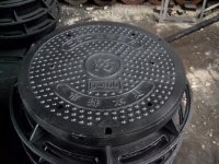球墨铸铁井盖的生产流程 1.原材料控制: (1).生铁:每批生铁进厂必须进行检测,合格后方可入库,如不合格拒绝使用。 (2).检测频次:30吨以下每批三个样品,30吨以上每批五个样品。 (3).回炉料:为了确保产品质量稳定,回炉料的投放严格控制在30%的比例之内。 2.熔炼方法(球墨铸铁井盖、井圈) (1). 1.5吨双频电炉熔炼:出炉温度在1400--1500℃ (2). 每包铁水重量:1500kg/包 (3).稀土镁合金加入量1.4%-1.6% 3.控制方式 (1).每包铁水球化之前检测一次出炉温度,控制范围1400-1500℃。 (2).每包铁水球化完毕后,检测一次铁水温度,控制范围在1360℃以上。 (3).每日进行原铁水1—2个样品的五元素检测,用以控制铸件材质及炉料回收使用的稳定性。 (4).每包铁水浇注控制时间长为10分钟(球化反应后)超过此时间作为报废处理。 (5).每包铁水浇注完毕后,将事先预制标牌(上面刻有该包次的序号)插入该包浇注的铸件的浇口杯中,用以防止不同包次混淆。 (6).每包铁水浇注后期制作抗拉试棒毛坯,作为一个检验批次,做机械性能、金相组织及硬度的检测。 (7).落沙时,根据号牌分别堆放,不同包次不能混淆,等待试棒及金相的检测结果。 (8).试棒机械性能结果合格后,通知车间清理。发现不合格包次,依照标志牌号码逐个报废。 4.井盖的检验:严格按照检验标准执行。 (1).外观:无明显铸造缺陷,图案清楚,字迹清晰。 (2).平度检验:用专用胎具检验井盖的平度。 制作一个直径为产品尺寸,深度37mm的胎具,上述尺寸通过机加工而成,井盖放在胎具中,不能有晃动及响声,井盖不得高于胎具,深度(37mm)配合间隙在3mm。 (3).承重载荷采用抽检方式:在压力机做试压试验,井盖承压360KN或210KN确认合格批次。 5.井圈检验 (1).外观:无明显的铸造缺陷。 (2).用专用工具检测井圈直径,控制范围直径在井盖尺寸,深度40mm,螺栓孔要用专用检具逐检。 6.配合及喷漆检测: 井盖与井框配合组装要平,不晃动、无声响,盖与框高低配合不超过1mm。井盖(圈)喷漆均匀,无锈斑。