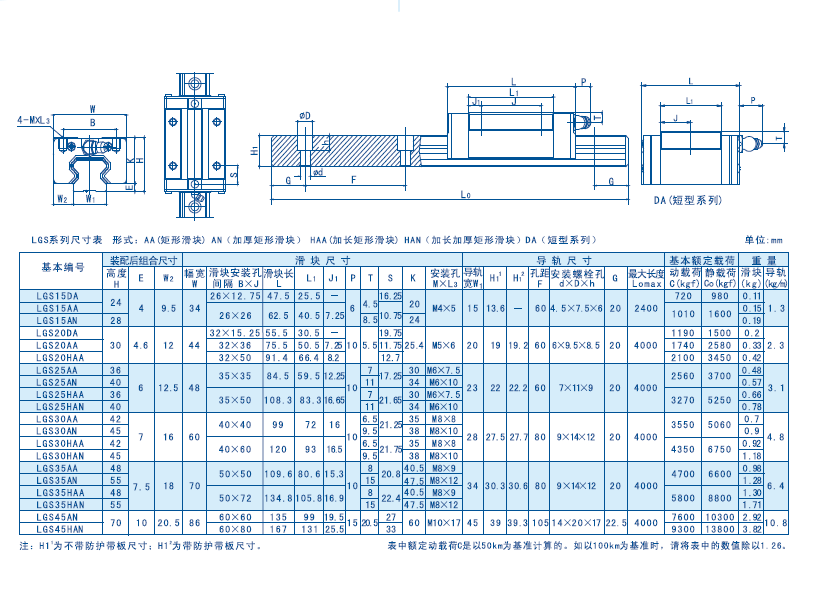 在导轨球形滚道面上,通过成形磨削加工圆弧型沟槽,增大了接触面积,能承受较大的许用载荷,承受冲击载荷和重载荷作用时,承载接触区增大,提高了系统的刚度。滚动直线导轨副可承受上下左右四向各种载荷,可以根据不同的目的进行安装和设计。