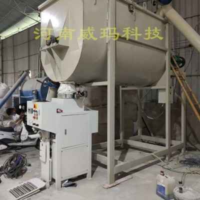 气吹式阀口包装机适合于流动性较好的粉末或细小颗粒(≤5mm)的包装,利用压缩空气为动力。压缩空气通过雾化器(气垫)使密闭容器内的物料发生流化状态,从而达到输送给料的作用。密闭采用气动橡胶阀门,通过控制阀门的通流面积,以达到控制包装的物料的给料量,实现有效和稳定的包装精度和速度。该生产线可生产多种干粉产品:保温砂浆,粘结砂浆,抗裂砂浆,干粉粘结剂,自流平砂浆,干粉腻子等多种干粉材料产品。