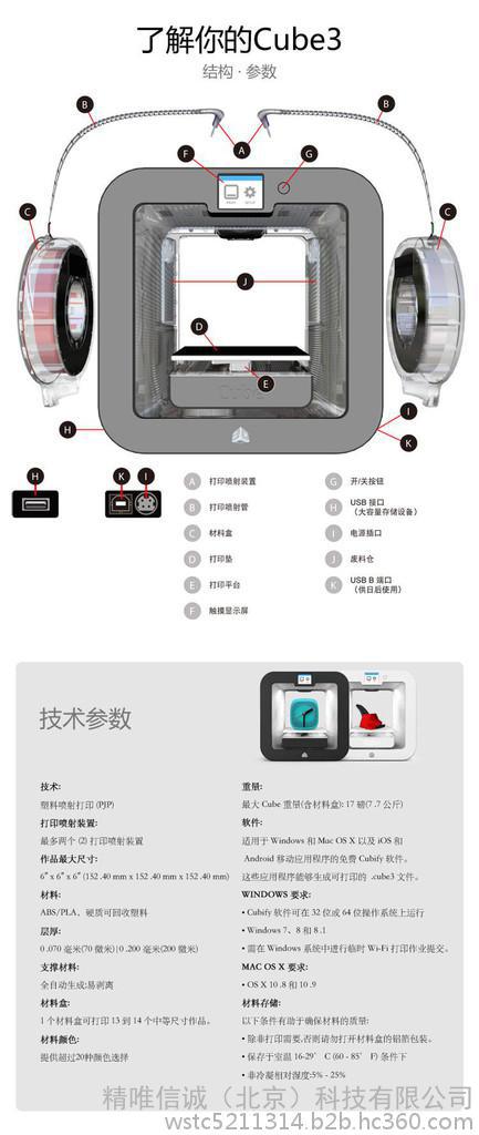 Cube 3(白)3D打印机 美国原装进口双喷头3D打印机,全中文操作界面,自动装载材料、自动调平
