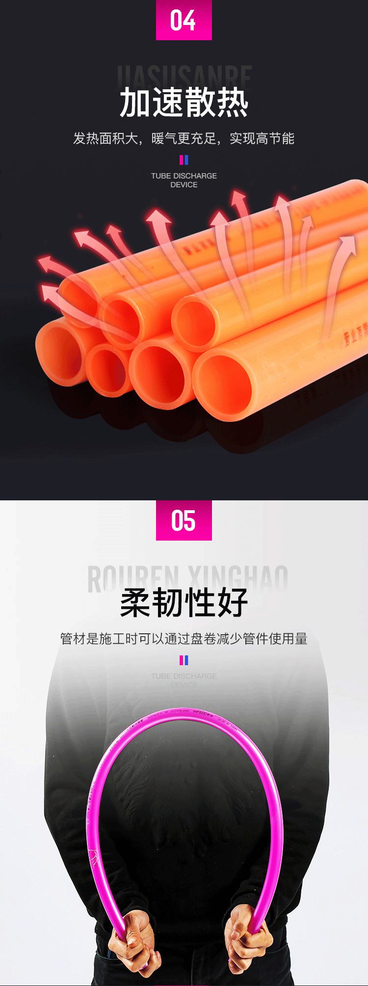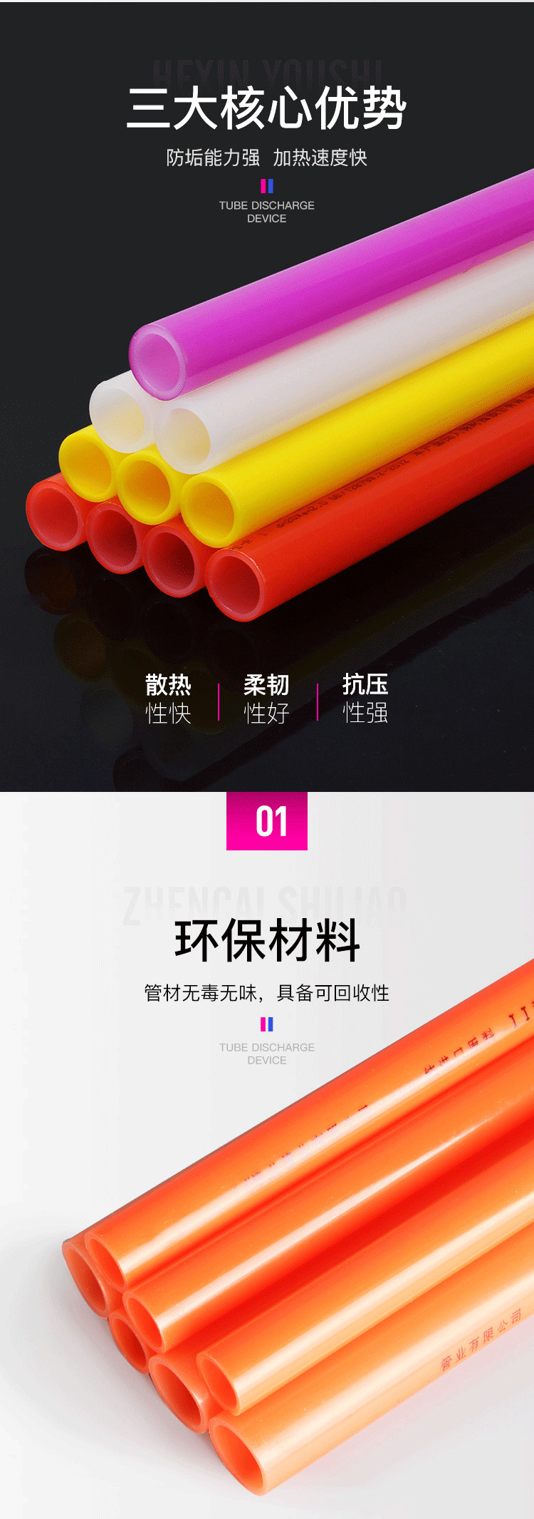 保留了PEX管的优点,管材可以通过热熔连接,接头可靠,不易发生渗漏,柔韧性和耐低温性能很好,并且材料价格适中,性价比较高,是目前地暖采用中的通用管材。