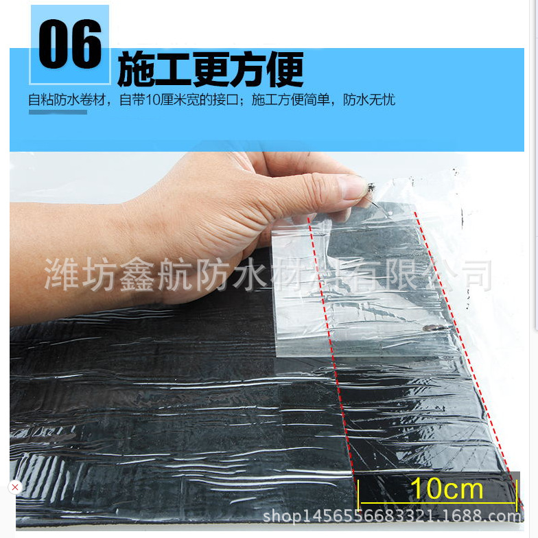 1、不用粘结剂,也不须加热烤至熔化,只须撕去隔离层,即可牢固地粘结在基层上。施工方便且施工速度极快。