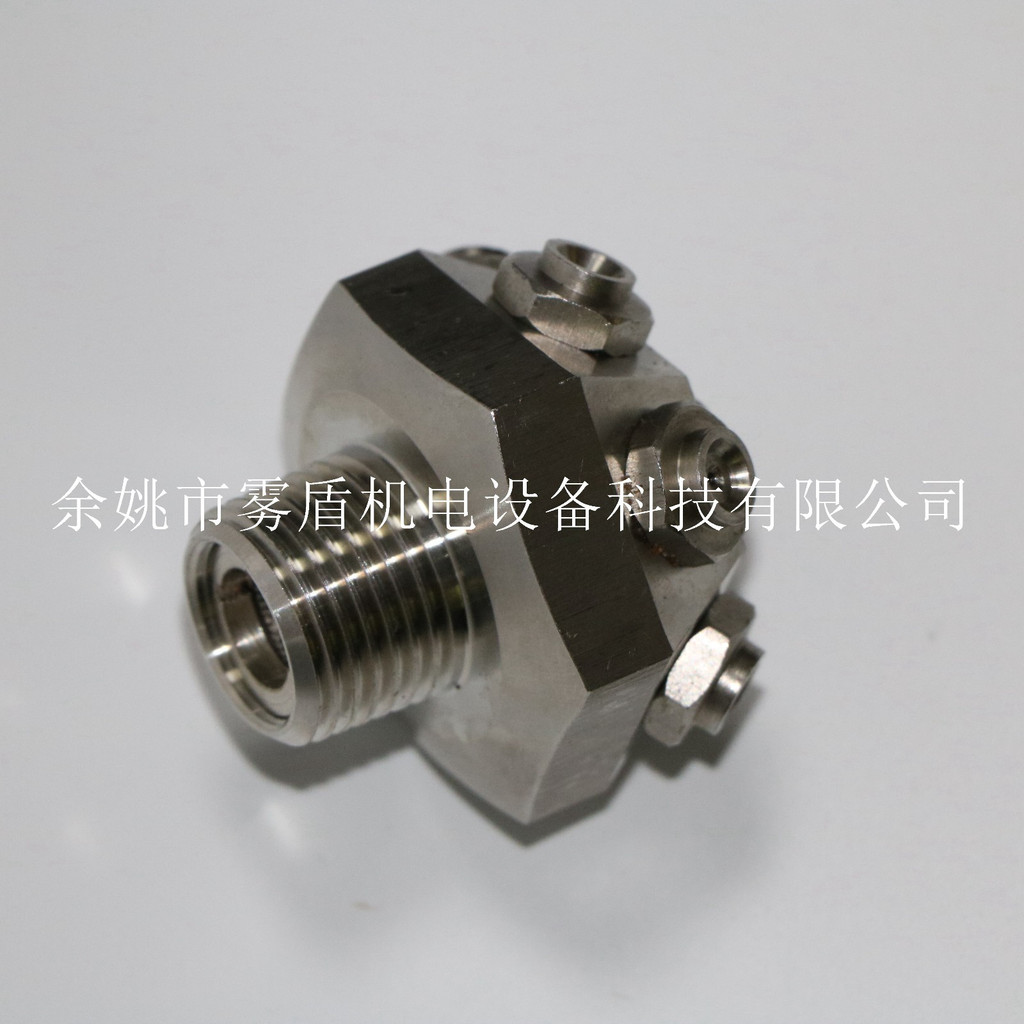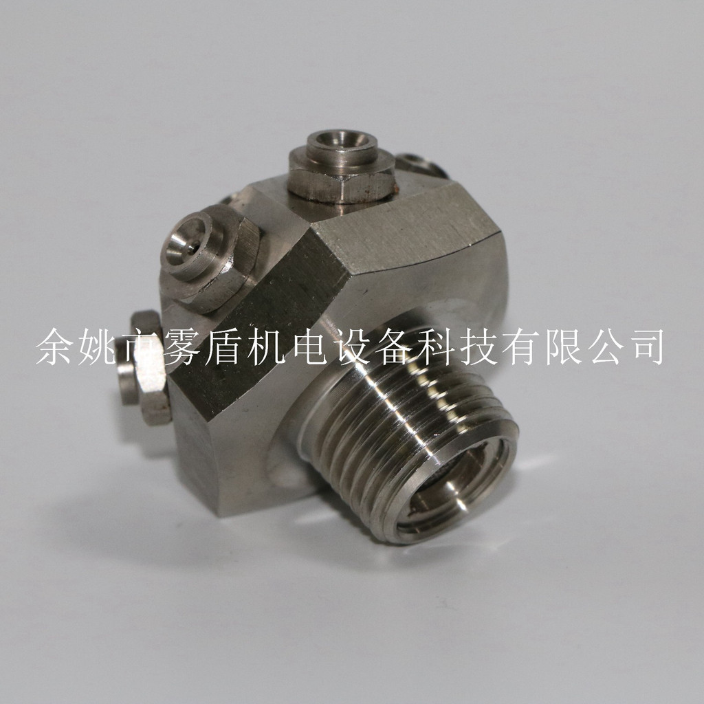 由本体、喷雾芯、喷雾嘴、防尘罩、过滤网等构成,一定压力的水通过过滤网进喷头后,在喷雾嘴内相互旋转产生动能,