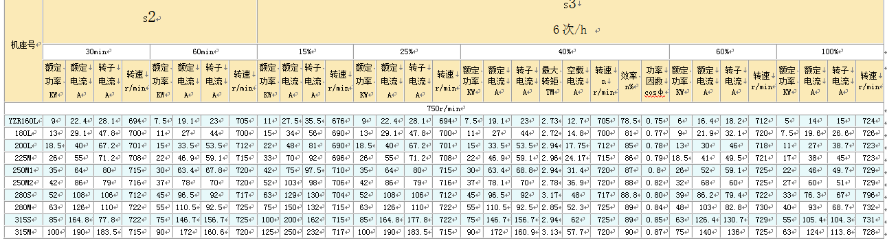 | 产品类型:三相异步电动机 | 极数:6极 |