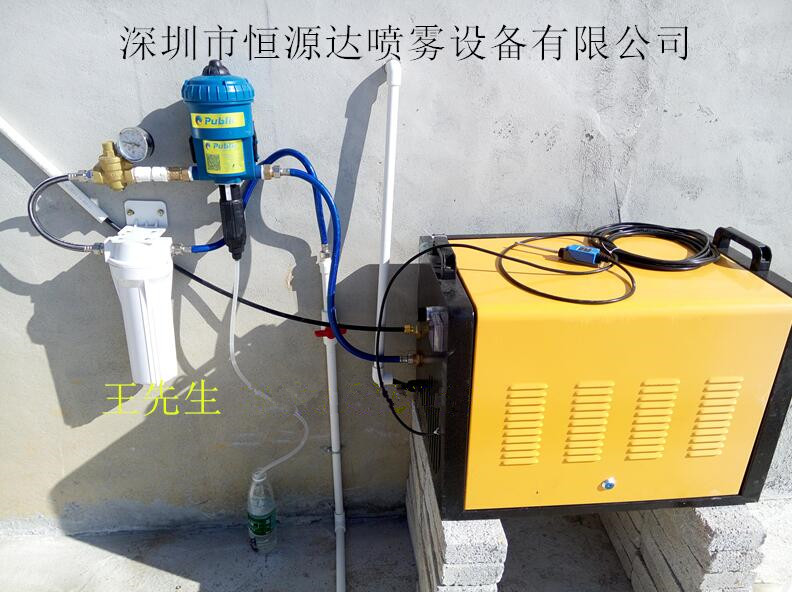 科学统计,每使用一公斤的水激发成浮游状态的人造雾,得到的效果等于溶解七公斤的冰,因此,人造雾系统的冷却效果是强力而且经济的。使用人造雾系统的饲舍内降温可达5-8度,喷药可充满整个饲舍空间,具达到熏蒸的效果,不留死角,杀虫、灭菌、防疫除臭,使操作人员不必立于现场,无危险性,且比传统喷药节约三分之一以上的药量,事半功倍。