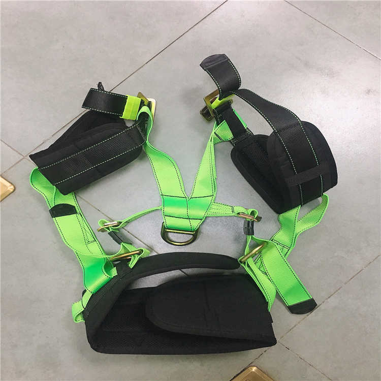配有胸前两个D型环用于人员上升或挂至安全钩,两腰侧D型环用于工作定位或平台限位作业,后背单D型环用于连接减震绳。