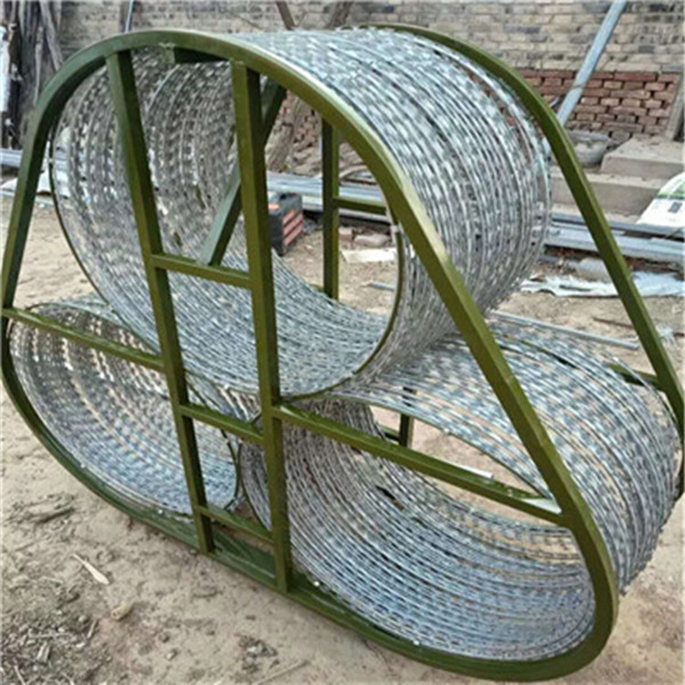封控阻隔网是为处置群体性事件配备的战术性器材,该产品有单环型和三环型两种结构,主要用于群体事件的隔离和道口及道路的封闭,该产品*片锋利,具有很好的威慑作用,阻隔网底部设有4个收缩式的脚轮,在收拢状态下可很方便的推动行走,阻隔网外部配有帆布外罩,方便运输、存放,避免搬运装卸时的扎伤。