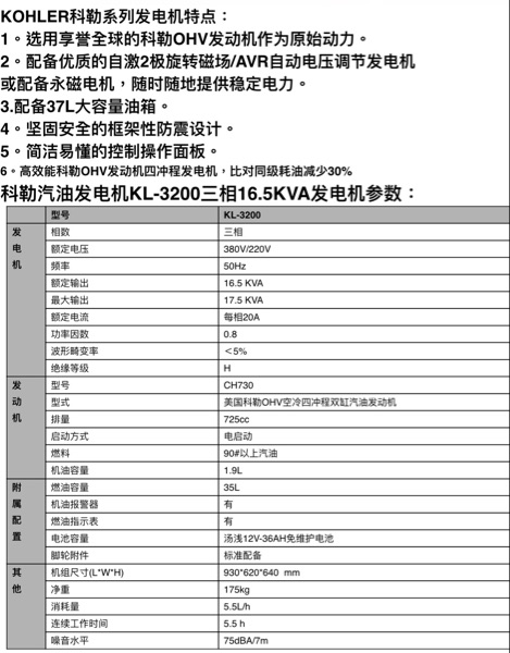陕西西安 美国科勒KL-3200汽油发电机16.5KVA 进口科勒汽油发电机