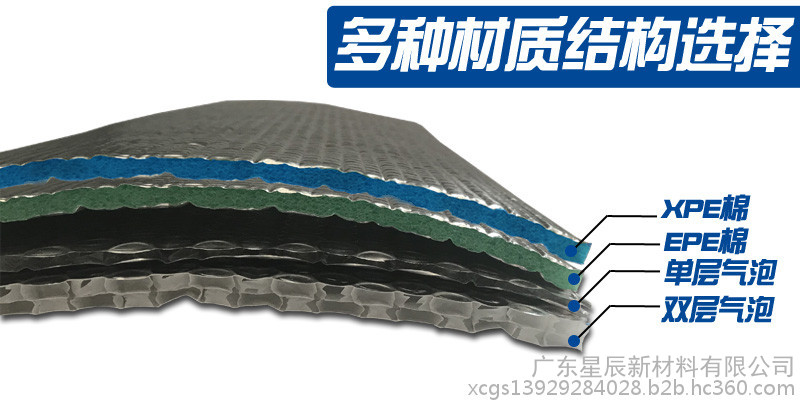 我司现有的隔热保温材料有:单层纳米气囊反射层,双层纳米气囊反射层、气垫隔热反对流层、以及耐高温反射层(中间材质为epe/xpe泡棉),欢迎来电咨询。