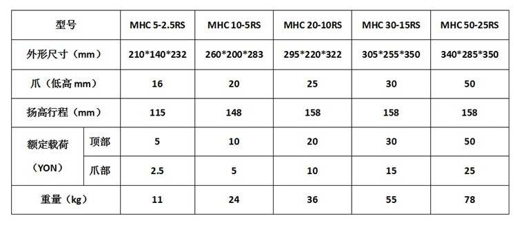 | 型号 | MHC-2.5RS/MHC-5RS/MHC-10RS/MHC-15RS/MHC-25RS |