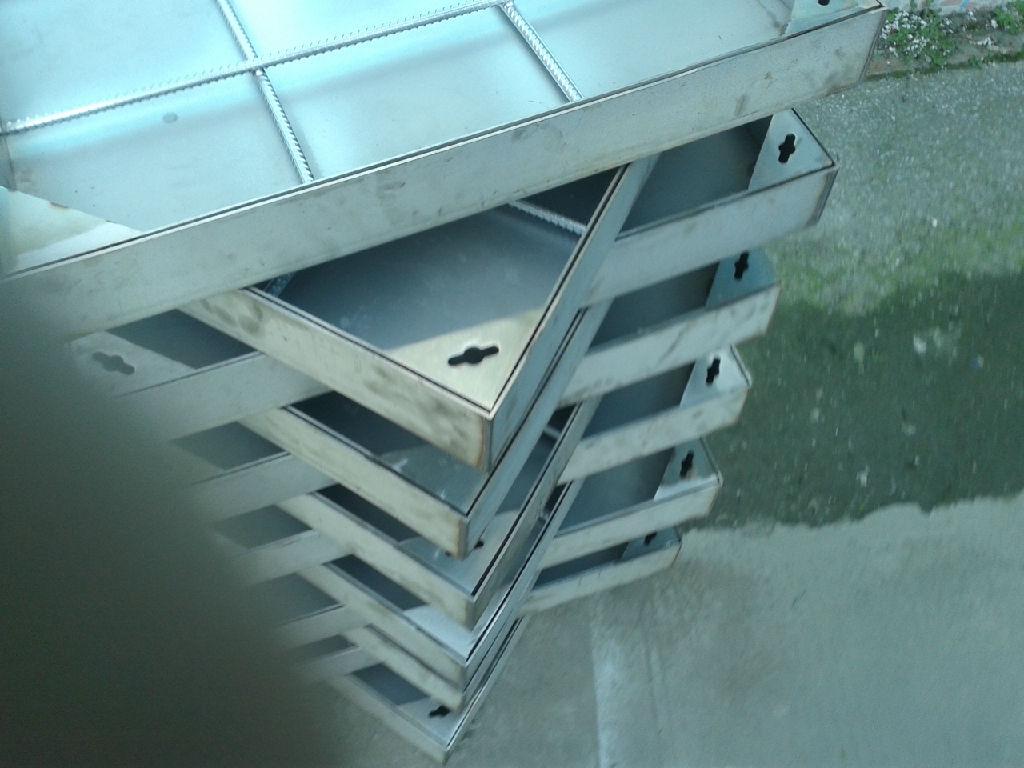 不锈钢井盖由井框、井盖组成,井盖设计为方形的凹槽,其剖面也可为倒梯形,表面直接可铺贴地砖,这样可使井盖与井框的配合更加紧密,改善了目前井盖的不足,隐形井盖只在地表面暴露四边边框,井盖的中间凹下一定深度,凹面的底部设计为弧形,凹面上设有加强筋。