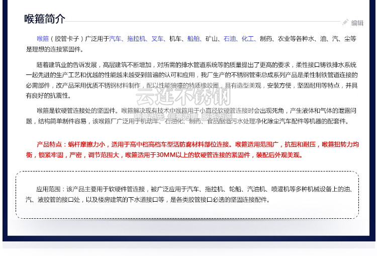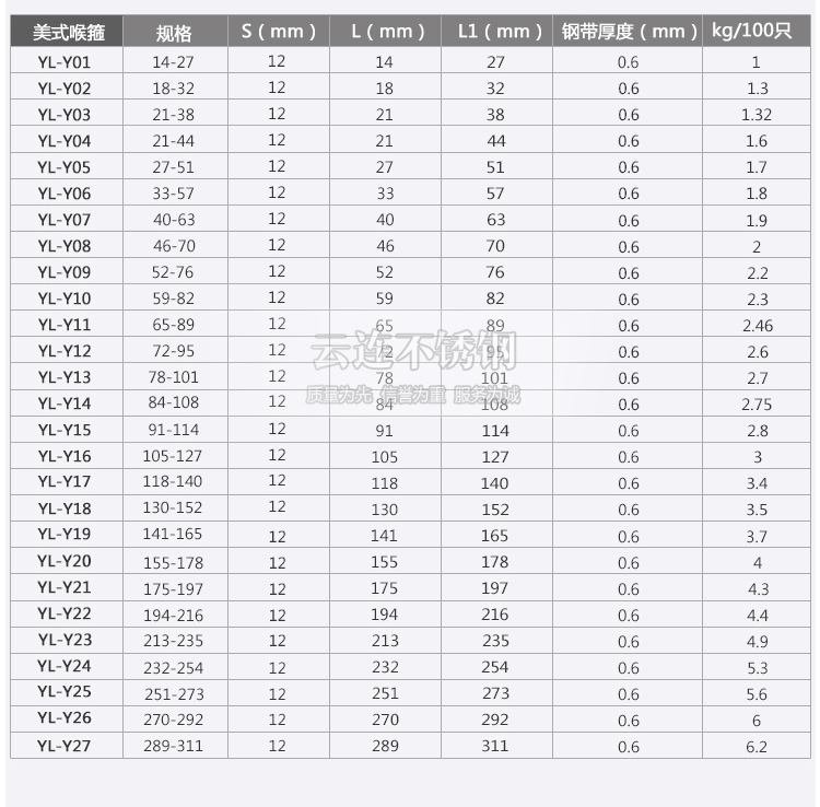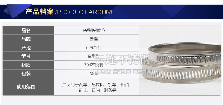 云连牌 304不锈钢卡箍 管夹 喉箍 抱箍 管卡中美式喉箍全系列