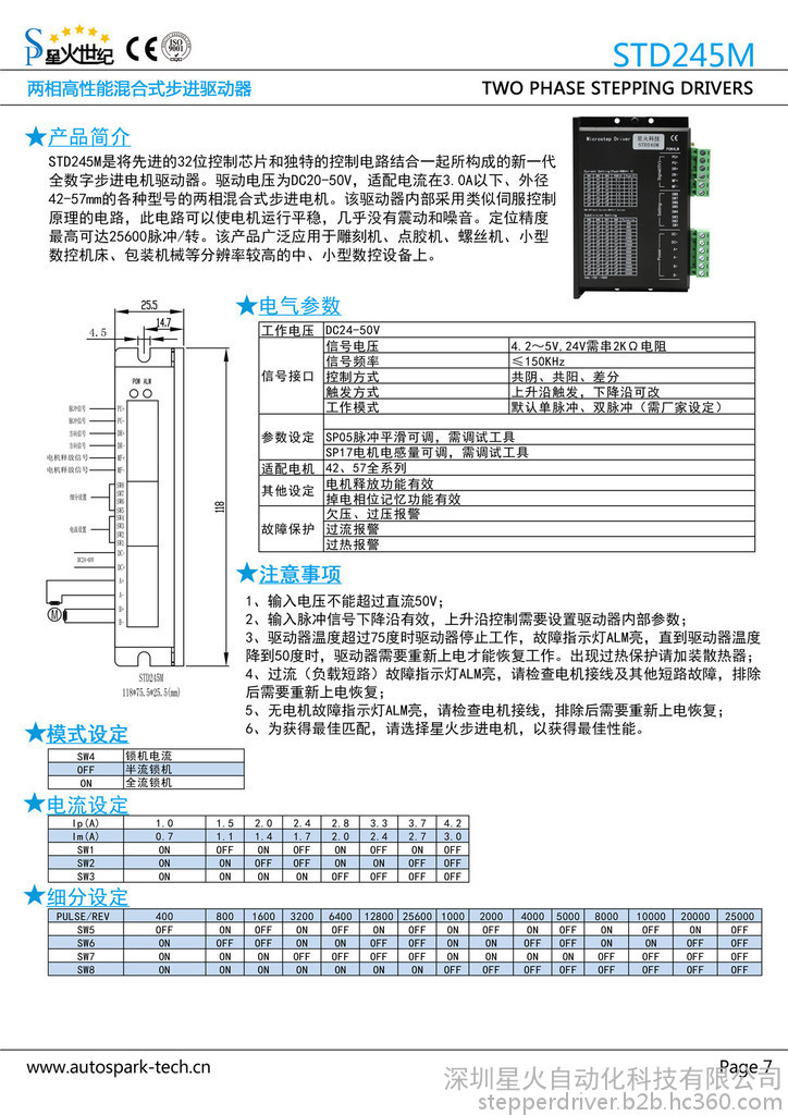 星火世纪广告雕刻机专用低压两相混合式步进电机驱动器STD245M
