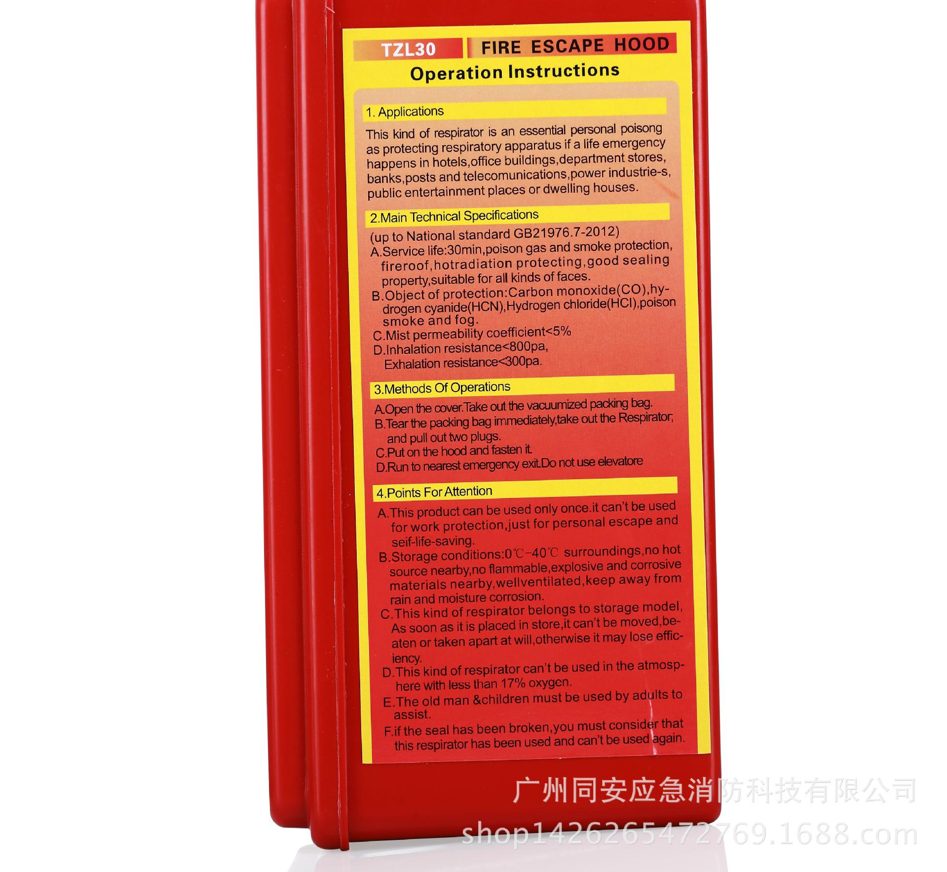 TZL30符合GB21976.7-2012《建筑火灾逃生避难器材 第7部分:过滤式消防自救呼吸器》标准要求。