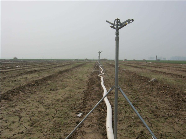 3.管道系统及配件。管道系统一般包括干管、支管两级,竖管三级,其作用是将压力水输送并分配到田间喷头中去。干管和支管起输、配水作用,竖管安装在支管上,末端接喷头。管道系统中装有各种连接和控制的附属配件,包括闸阀、三通、弯头和其他接头等,有时在干管或支管的上端还装有施肥装置。