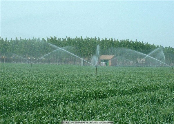 2.水泵及配套动力机。喷灌需要使用有压力的水才能进行喷洒。通常是用水泵将水提吸、增压、输送到各级管道及各个喷头中,并通过喷头喷洒出来。喷灌可使用各种农用泵,如离心泵、潜水泵、深井泵等。在有电力供应的地方常用电动机作为水泵的动力机。在用电困难的地方可用柴油机、拖拉机或手扶拖拉机等作为水泵的动力机,动力机功率大小根据水泵的配套要求而定。