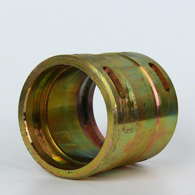 三、胶管接头与胶管扣压形式: 1. 剥外胶扣压 需剥去一定长度的外胶层,适用于GB/T 3683-92,GB/T 10544-03,DIN20022,SAE100R1A/R2A等标准钢丝编织胶管以及钢丝缠绕胶管。 2. 不剥外胶扣压 加工工艺简单,适用于纤维编织胶管及SAE100RIAT/R2AT等型号钢丝编织胶管。 3. 剥内外胶扣压 需剥去一定长度的内胶层和外胶层,称为内锁式安全型扣压式胶管接头,适用于GB/T10544-89大口径管SAER12,DIN20023-4SH等超高压钢丝缠绕胶管。