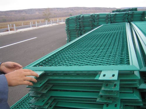 此种网大多采用钢板网、异型管、边耳、圆管焊接成,连接附件与热镀管支柱固定。防眩性能极好,多用于公路、高速公路、铁路、桥梁、建筑工地、小区、工厂、飞机场、体育场绿地等地区,起到防眩与防护的作用;另有防眩隔离栅、围栏、网栏等名称;具有外形美观,风阻少,经过镀锌涂塑双涂层能延长使用寿命,减少维护费用,且安装便利,不易损坏,接触面少,不易沾尘能长久保持整洁、规格多样,