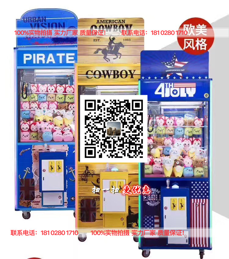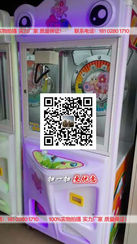 豪华娃娃机1780元/台,配置:加厚防火板,加厚钢化玻璃、台湾主板、防晒贴纸、豪华天车电源、七彩LED灯。
