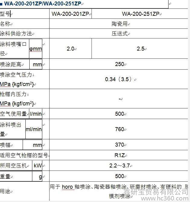 岩宝W-200-201ZP喷枪是款陶瓷用手动喷枪,适合于陶瓷釉、珐琅釉、研磨剂等喷涂。其口径为:2.0mm;喷涂距离为:250mm;喷幅为:370mm;所用空压机为:2.2-3.7KW。