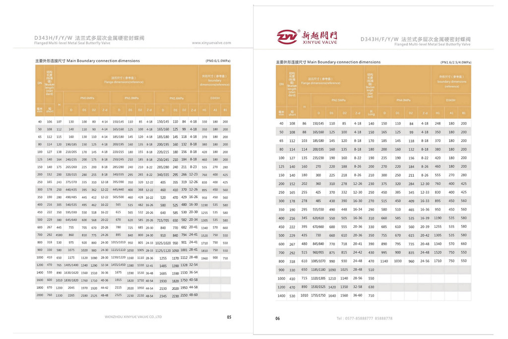 D343H-16C硬密封法兰蝶阀具体尺寸: