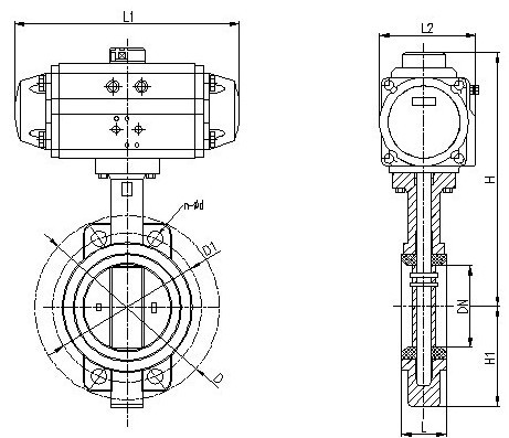 D673H-16C 三偏心金属硬密封气动对夹蝶阀具体尺寸: