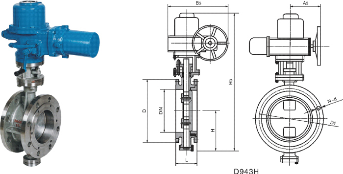 D943H-16C电动硬密封蝶阀具体尺寸: