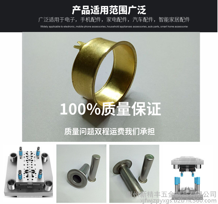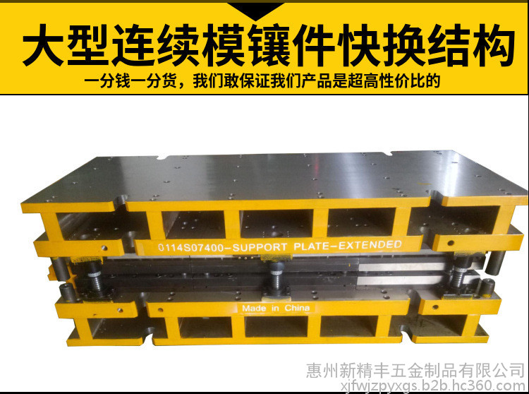 模具结构:向下拉伸结构,内外精密导柱,上下脱料板结构,所有冲头镶件都是快换快拆结构。一般问题都不用拆模具,直接停机维修,简单快捷。