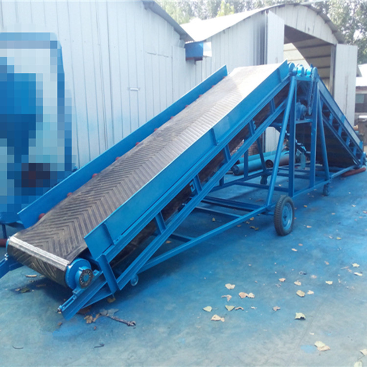 伸缩皮带机是由挠性输送带作为物料承载件的连续输送设备,根据摩擦传动原理,由传动滚筒带动输送带,输送带回绕变向滚筒,并由伸缩联动机构拽动作往返动作,使输送带自由伸缩。伸缩胶带输送机可以在水平、斜坡正反方向伸缩输送邮件、块状物和成件物品;主要用于邮政、、机械、化工、电器电子、食品加工等行业的装车、卸车及与其他输送设备配套;组成完整的自动化输送系统。具有输送倾角大,它广泛的应用电力,采用的是具有波状挡边和横隔板的输送带。其特点是在一定范围内可任意变距离输送,占地面积小、功能多、功耗小、噪声低、输送能力强。物料与输送带间没有相对运动,否则可能损坏变频器,整机的升降与运行均为非机动,也可输送成件物品。物件可直接进入车厢内任意位置,更大程度减轻劳动强度、减少货物流转损伤率,是企业降低产品成本的理想设备。