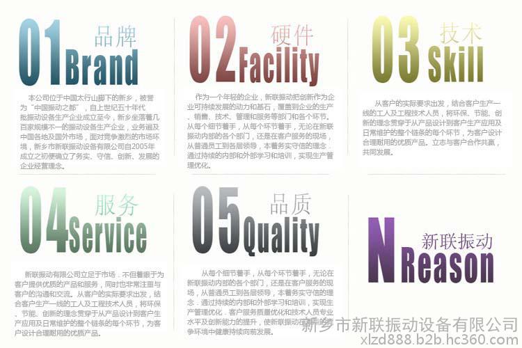 新联振动有限公司立足于市场.不但着眼于为客户提供好的产品和服务,同时也非常注重与客户的沟通和交流。从客户的实际要求出发,结合客户生产一线的工人及工程技术人员,将环保、节能、创新的理念贯穿于从产品设计到客户生产应用及日常维护的整个链条的每个环节,为客户设计合理耐用的产品。立志与客户合作共赢,共同发展。欢迎各界朋友莅临参观、指导和业务洽谈。![]()