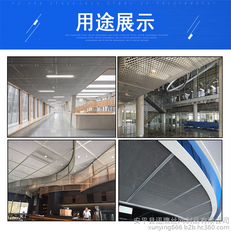 冲压机械冲压而成,耐弯曲、抗老化、不易生锈,网面平整、光滑、坚固,网孔均匀,易于深加工,可以喷漆或抛光,易于安装,引人注目,有良好的吸音效果,较轻的重量,较长的寿命 。