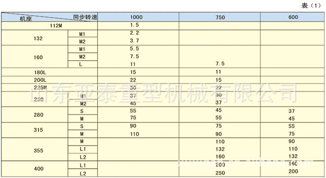 1.7、输出功率和转速基准工作制(S340%)时的额定输出功率和同步转速见表1(笼型电动机制造粗线框内的规格)
