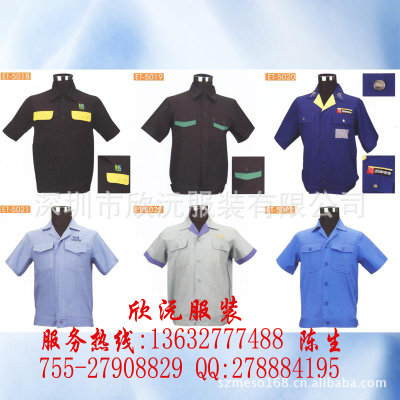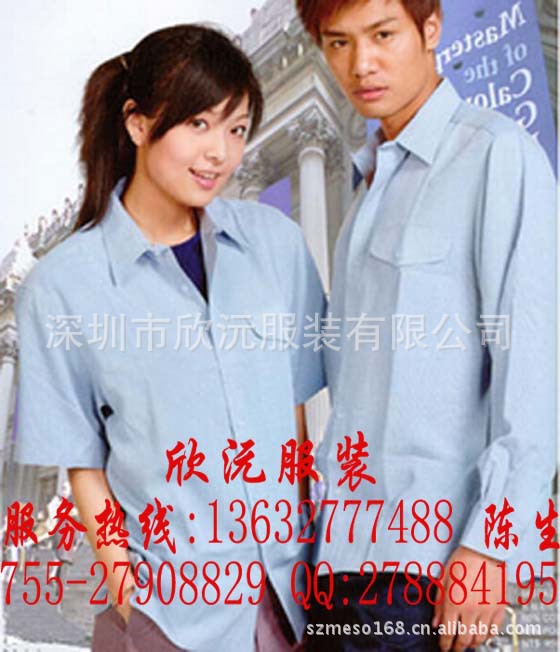 专业的工作服生产厂家、十五年诚信经营、优越的品质良好的服务真诚期待与您合作:13632777488 18926064805 13928444008.诚实做人,守信做事.你一个电话,剩下的事我来办.让你的采购工作轻松从容.定做工作服无需东挑西选.深圳欣沅服装有限公司专业的工作服生产厂家、我们拒绝暴利,只求合理的利润空间,选择我们体验世纪网商的经营理念。专业生产销售:工作服、酒店制服、厂服、工衣、广告衫、文化衫、T恤衫、职业装、衬衫、西装、运动装等。款式新颖.做工精细。可按客户不同的要求,单独设计,高水准量身定做。您**忠实的供应商.客户服务热线:0755-27908829 18926064805 13632777488 13928444008 QQ:278884195 网址:http://szmeso168.cn.alibaba.com/