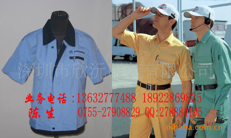 专业的工作服生产商、十五年诚信经营、品质卓越、真诚的期待与您合作:13632777488 18926064805 13928444008.诚实做人,守信做事.你一个电话,剩下的事我来办.让你的采购工作轻松从容.定做工作服无需东挑西选.深圳欣沅服装有限公司专业的工作服生产厂家、我们拒绝暴利,只求合理的利润空间,选择我们体验世纪网商的经营理念。专业生产销售:工作服、酒店制服、厂服、工衣、广告衫、文化衫、T恤衫、职业装、衬衫、西装、运动装等。款式新颖.做工精细。可按客户不同的要求,单独设计,高水准量身定做。您**忠实的供应商.客户服务热线:0755-27908829 18926064805 13632777488 13928444008 QQ:278884195 /398475079网址:http://szmeso168.cn.alibaba.com/