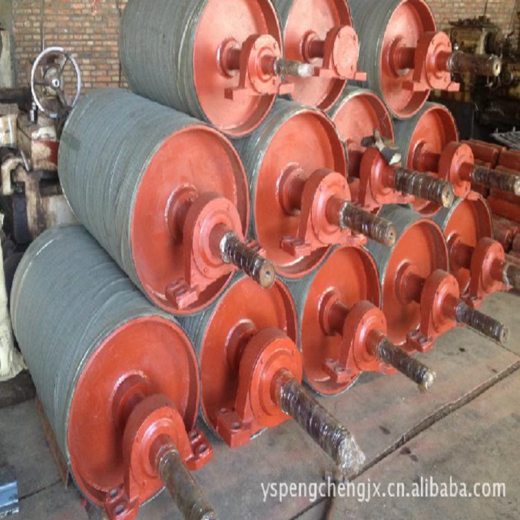 传动滚筒的直径系列为:400、500、630、800、1000、1250、1400、1600、1800、2000、2200mm等规格。还可根据客户要求制作各种规格的产品。根据滚筒承载能力的大小,滚筒的结构有钢板焊接结构、铸焊结构两种。铸焊滚筒的筒 体及接盘均用有限元法进行了强度校核。 滚筒的轴承座有整体式、剖分式两大类,每类都可配用普通的调心滚子(柱)轴承或带 紧定套的调心滚子(柱)轴承。所配轴承的生产厂家可为国内哈、瓦、洛等知名轴承厂,也可为国外SKF、FAG等厂家。由业主选定。所有滚筒均经过静平衡检验**标准规定的大规格滚筒均经过退火及探伤检验后出厂。
