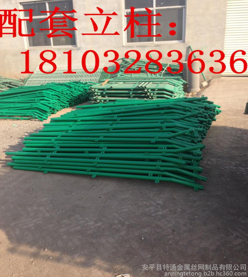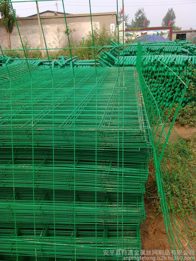 产品规格:浸塑丝径 4.5--5.0mm 网孔 50 X 150mm 8*16mm9*17mm立柱 48X2.5mm 尺寸 2000 --2400 X 2950mm 外倾防攀角度30: