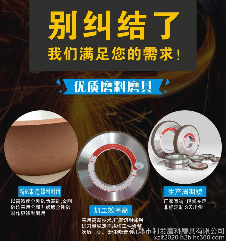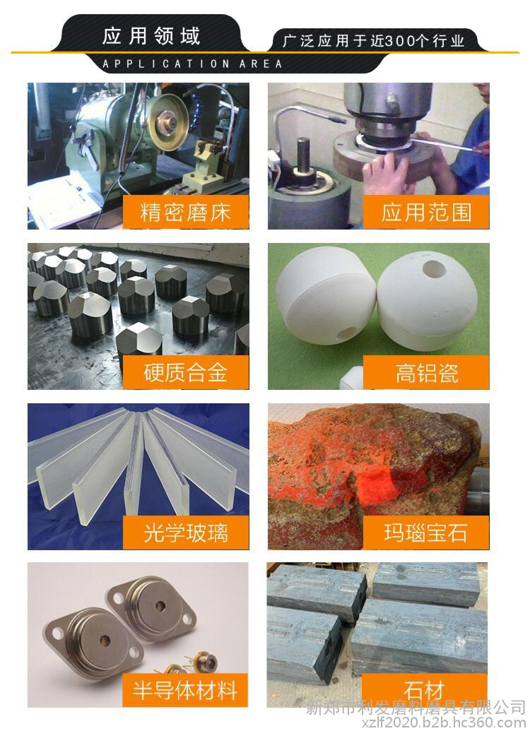 磨削对象:磨削硬脆材料及硬质合金,高铝瓷,光学玻璃,玛瑙 效宝石,半导体材料,石材;率高、精度高、消耗少,寿命长。