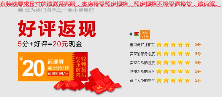 注意;此款为定制款一旦售出非质量问题概不退换.需要购买的亲们要考虑清楚以免造成不必要的损失!