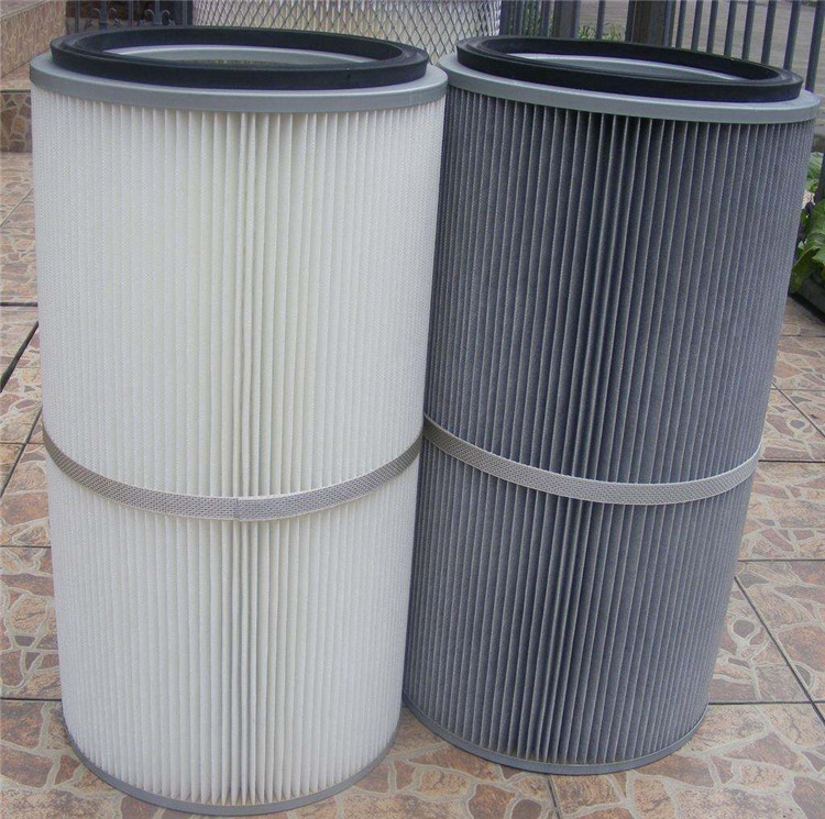 滤筒的品种较多,有细而长与粗而短之分。细长滤筒(如φ≤160,L=1~2m),其褶(如45褶)间空隙大、夹角大,褶少而浅,过滤面积比同径同长的滤袋大2~5倍,清灰易而效果好;适用于浓度≥15g/m粉尘的过滤除尘,过滤风速0.6~1.2m/min。粗短滤筒(如φ350,L=0.66m)直径大、长度短、褶多(120~350褶)而深、褶间空隙小,过滤面积大,较之同径同长滤袋面积大14~35倍,适于场地面积小、空间小的地方布置;但因褶角小,粉尘易积聚,难于清灰,适于浓度≤5g/m粉尘的过滤除尘,过滤风速不宜>0.6m/min。
