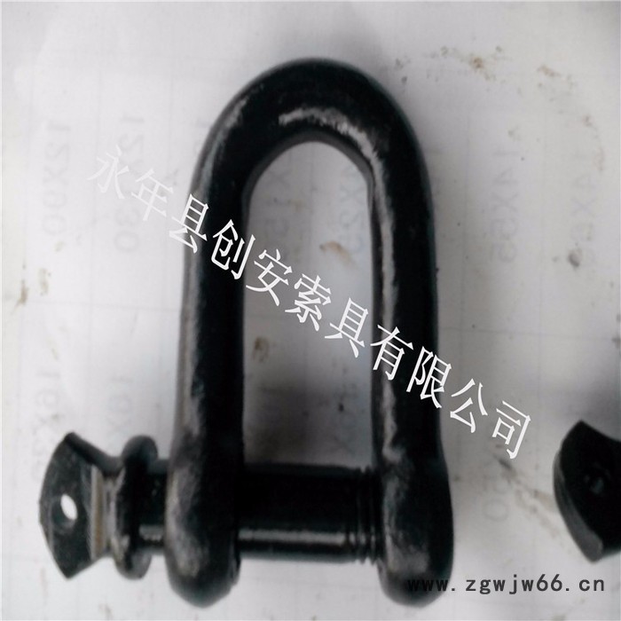 卸扣可用于索具末端配件,在吊装作业中直接与被吊物连接。 卸扣可用于索具与末端配件之间,只起连接作用。 当索具与横梁配合使用时,卸扣可用于索具**代替吊环与横梁下部的耳板连接,便于安装和拆卸。 卸扣是起重作业中用得广泛的连接工具,吊装中主要用于经常安装和拆卸的连接部位。 D型卸扣主要用于单肢索具;B型卸扣主要用于多肢索具。