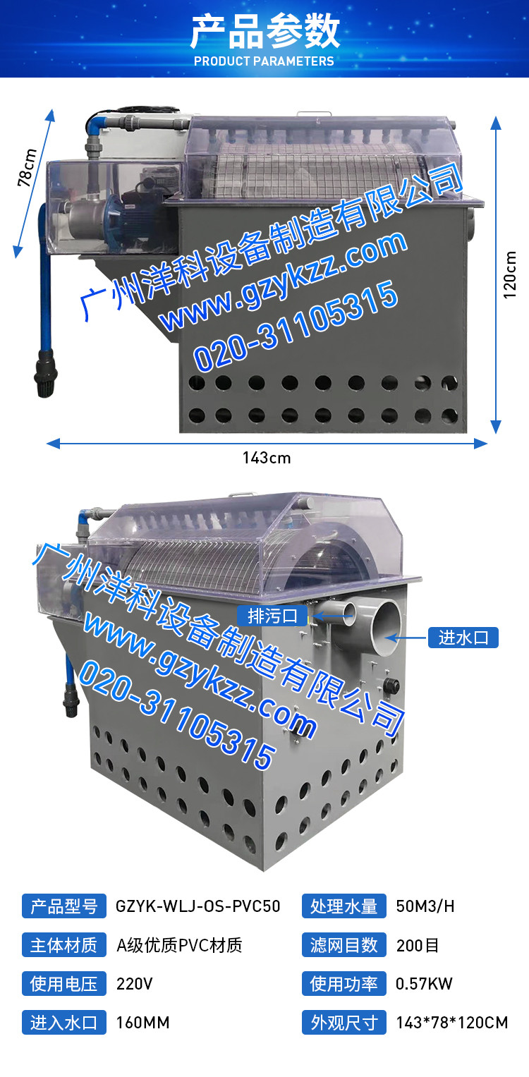 工厂化循环水养殖滚筒过滤微滤机开式PVC材质50立方微滤机(淡水)