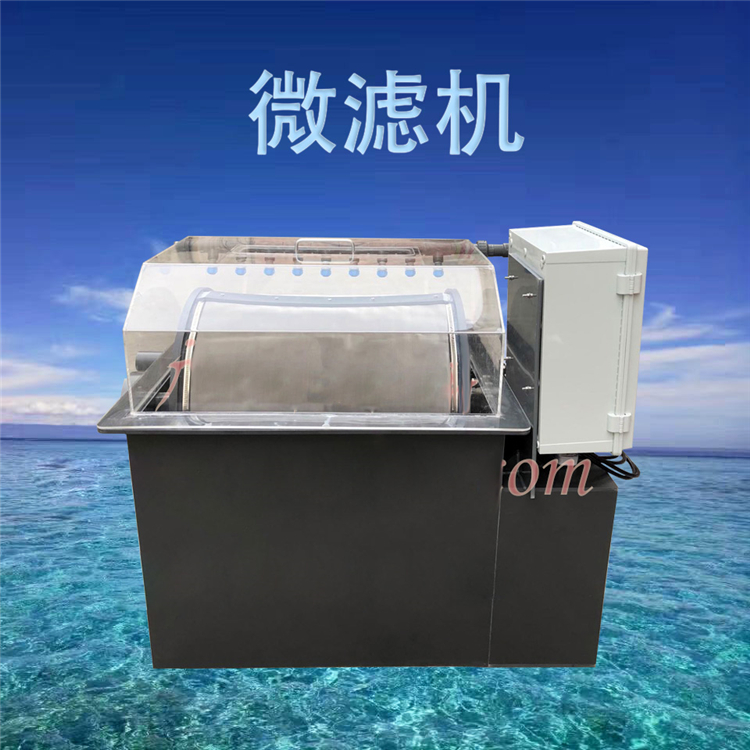 1、40立方/小时水体过滤小型微滤机箱体外壳主要是由耐箱体组件、滚筒组件、反清洗系统、电控箱系统四部分组成;它的主要作用:将水体中的颗料物在产生氨氮前将它过滤,达到水质要求,它的过滤精度可以≤30цm;去除水中90%的有机悬浮物;处理水体流0~200m3/H,使用一级特殊材料焊接制成。采用国内的316材质的不锈钢滤双层网将水中的悬浮物分离,不锈钢滤网作为清除悬浮物的介质。当含有悬浮物微粒的水进入滚筒内,悬浮物被不锈钢滤网截留,经过滤后不含悬浮物的水进入清水池。当滚筒内悬浮物积聚到一定数量时,会引起滤网透水量下降,导致滚筒内水位上升,当水位上升到设定的高水位时;按下液位自动控制系统运行键,此时,反清洗水泵和滚筒电机同时自动开启,反清洗水泵泵出的高压水经微滤机的反清洗系统,对旋转的滚筒滤网进行高压反冲洗,滞留在滤网上的悬浮物在高压水的冲洗下,进入收集槽经排污管排出。当滤网清洗干净后,滚筒滤网的透水量上升,滚筒内的水位下降,当水位降至设定的低水位时,自动控制系统工作,反清洗水泵和滚筒电机将自动停止工作微滤机又进入新一轮工作循环。