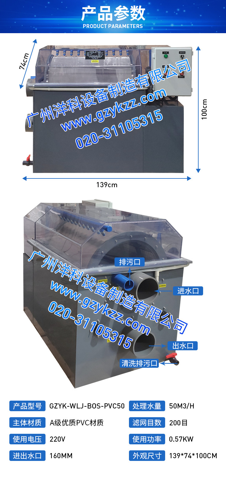 工厂化循环水产养殖滚筒过滤设备微滤机箱式PVC材质50立方(淡水)