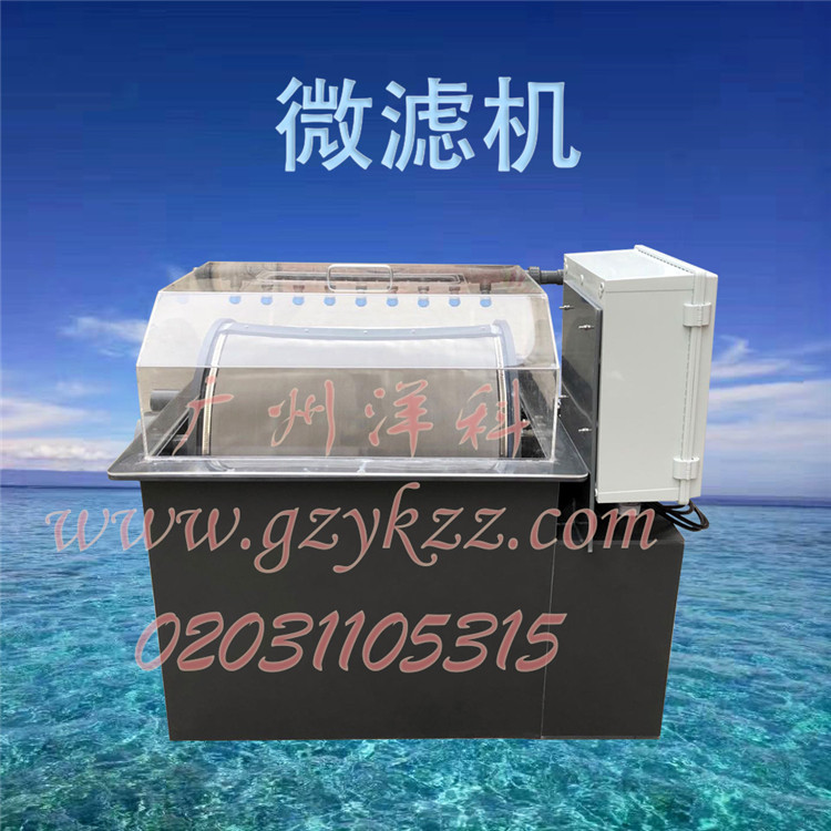 滚筒微滤机能大限度地分离水中50μm以上的固体颗粒悬浮物(主要是生物排泄物、食物残渣与有机碎屑等)。其工作原理是滤液从筛网中通过,滤渣被截留在网内,通过定时反冲装置,将滤渣从筛网中冲筛出,通过排污管排走。筛网在过滤的过程中,由于水中的微小悬浮颗粒物会引起筛网堵塞,当筛网堵塞时,液位自动控制组件启动,同时反清洗泵和滚筒减速机自动启动运作,使筛网得到及时的清洗,从而确保微滤机正常持续良好地运作。